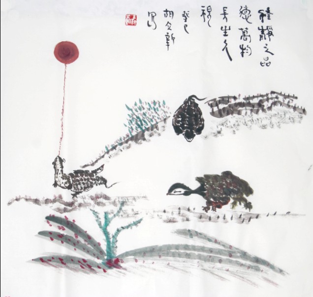 胡立新居士水墨写意花鸟画——琼珠弄玲珑,绿波荡漾红。三生清悠