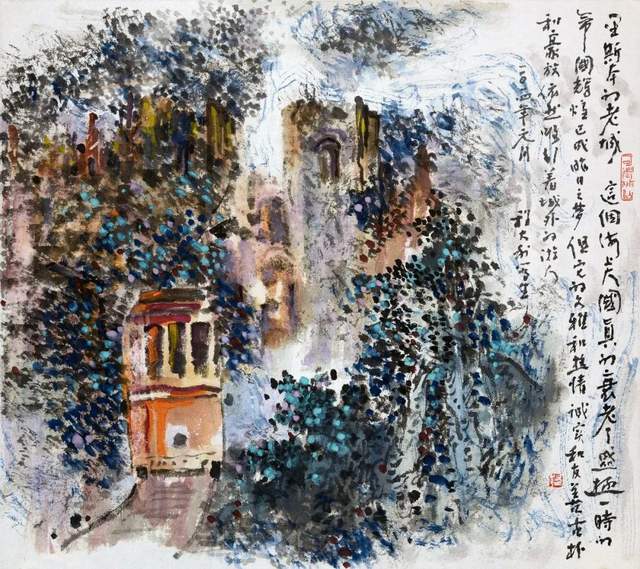诗中有画,画中有诗。书画大家通常也是好诗人。读诗、写诗,文学的实操向绘画的潜移默化自不待言。年逾古稀,程先生反而对古体诗词着力用功,外出写生采风,时有所悟,便吟咏为诗,常有精彩之作与同道唱和。比如《黄山狮子林写生遇雨》:畅写东君生墨雨,漫洇绝壁浸云襟。此情已伴渐翁去,独立苍茫师我心。再比如《过秦岭太白山》:群岭风云常异势,浮萍际遇任逍遥。我来山顶独无语,且听天风与海涛。
