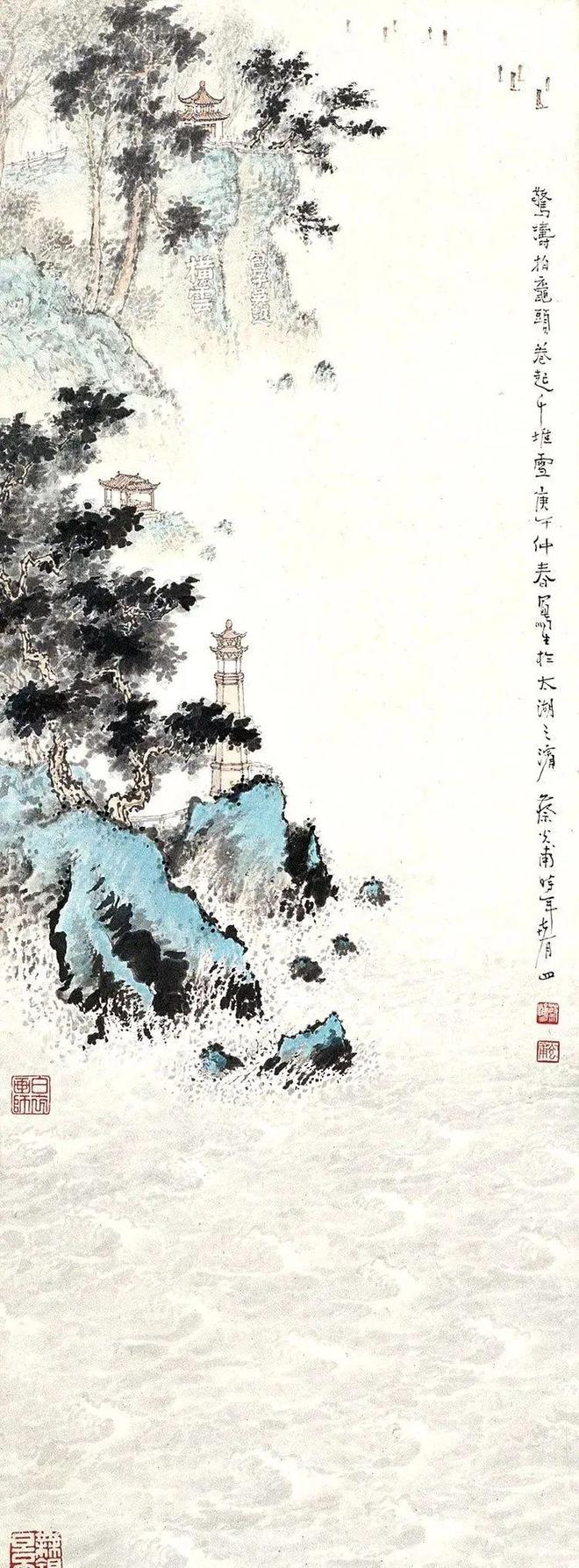 他的作品极具个性特色,是一位辨识度很高的画家。他不拘陈法自成蹊径,重实景写生与丰富想象相结合,揉院体画、文人画和民间年画技法于一体。构图周密饱满而意境深远,刻画精到,笔墨苍润、设色丰丽而平易近人。