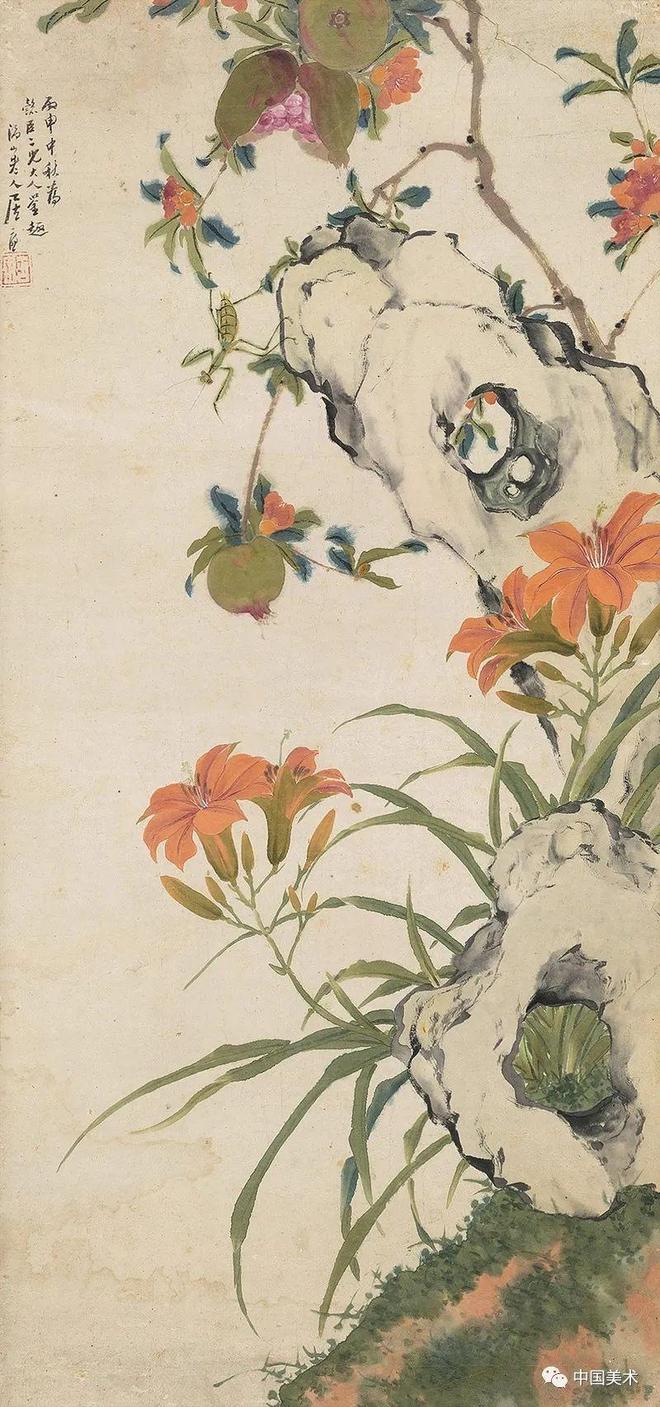 居巢 《绮石芳草》28x24cm 1873年 广州艺术博物院藏